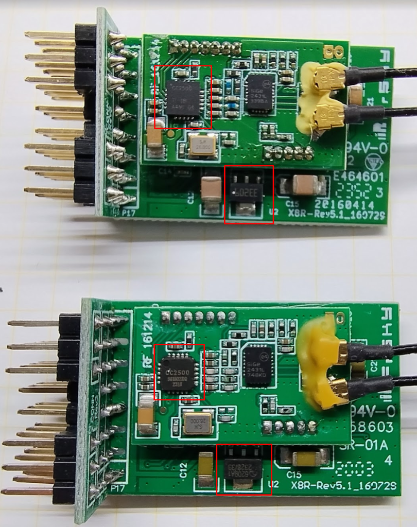 Zakaznik me poslal k analyze prijimac zakoupeny na bazaru. Baleny v blistru s zlutym papirovym pozadim a dokonce rikal, ze tam byla pecet. Posledni roky uz FrSky distribuje prijiamce v entistatickych zip saccich. To by tak nevadilo, ze nekdo najde starou zasobu, ale ten prijimac fungoval spatne, konkretne zde na kanalu 8 servo poslakuje. Ani jsem nemusel pripojovat osciloskop, kdyz jsem zkouknul exterier, byl me prijimac podezrely.