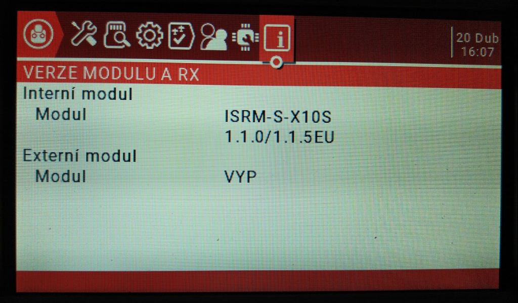 Po výměně to vypadalo OK, akorát to hlásilo starou verzi FW interního vysílacího modulu, přesně jak se píše zde v návodu výše.
