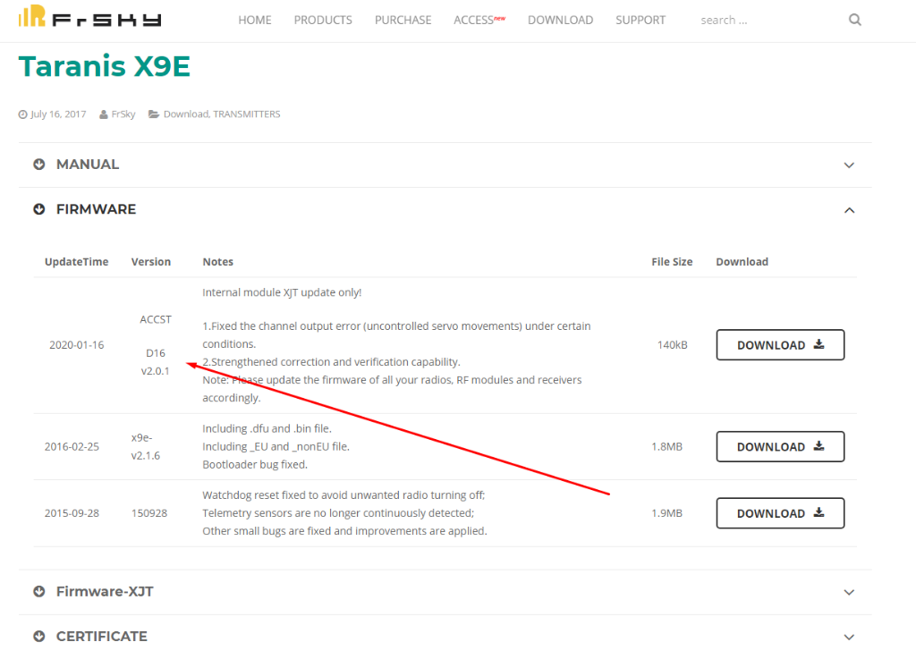 Dnes byla zverejnena cast aktualizace. Momentalne mame dostupne tyto FW na strankach FrSky https://www.frsky-rc.com/download/