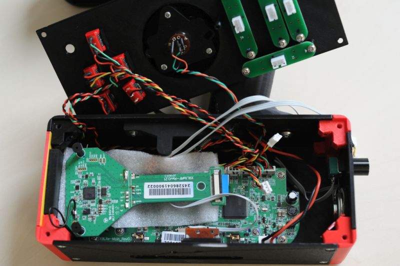 Je tam ještě pár drobných chybiček v návrhu, kde se mi třeba potkává displej se zamýšleným šroubkem, ale nic tragického. Ještě pořád jsem si nedokoupil delší spojovací kablík mezi deskou CPU a deskou TX, takže je tam trochu "namuchlaná". Nic méně všechno funguje bez zádrhelů.