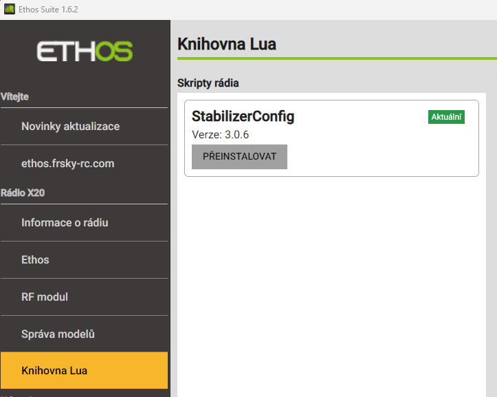 Od prosince 2024 se skript pro nove prijimace jako SRx at uz AP nebo TD ci TW a verzi FW 3 sjednotil do skriptu StabConfig - NastStab. Tenro skript muzete nainstalovat snadno pres Ethos Suite v knihovne LUA.