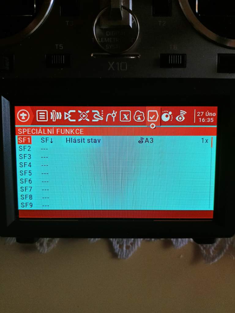 Zdravím.V Horusu 10s mám externí modul.Přijímač FS-IA6B.Na vysílači se mi zobrazí napěťí baterie,ale nevím jak nastavit alarm když mi klesne napětí pod určitou mez.Jak na to.Díky