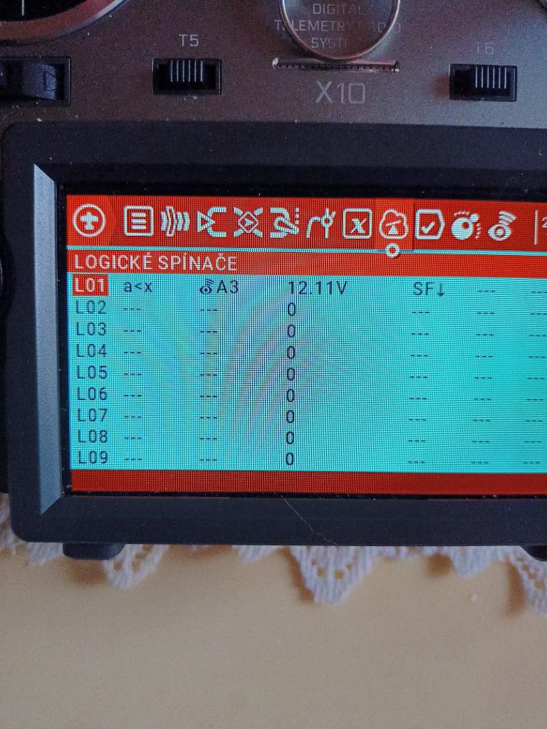 Ve logických spínačích vybrat fci "a<x", a bude telemetrická hodnota hlídaného napětí (napětí baterie - asi ne napětí Rx) a x mezní napětí, tento logický spínač se pak použije jako spouštěč spec. fce, která (třeba) zahásí "baterie modelu je vybitá". Případně doladit, aby rádio hlásilo "problém" třeba jedou za 10s....