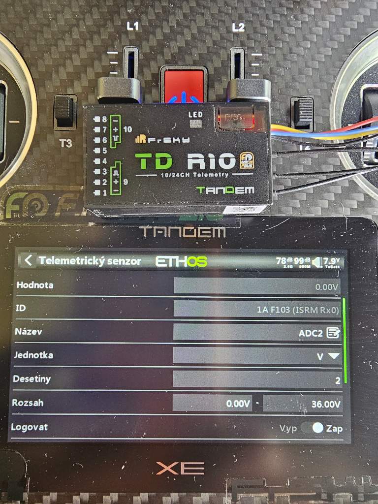 Pro mě výborný informace díky, malý konektor z boku přijímače, chtěl jsem napsat s.port, nicméně TD R 10 je výborný pro mě právě, tím že, lze nastavit na 2-10 cokoli od PWM až po S.port plus na 1 - SBUS vstup. Při dalších zkouškách jsem opět provedl reset senzoru ADC2 v provozu, FW na TD R 10 1.0.12 a na TDMX 1..0.13 .na rádiu ještě 1.5.8. Opětovně jsem ,již nebyl schopen zkoušením přivodit výpadek senzoru ADC, přestalo to ukazovat zmiňované hodnoty