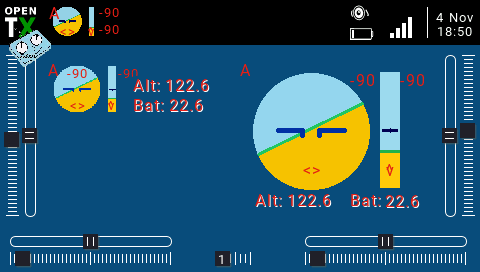 Ja jsem docela dlouho zkousel ten yaapu skript a on je fakt delanej hlavne pro drony a opravdu je zbytecne slozitej. Ale funguje tam krome horizontu i vyskomer a taky kompas (pokud ho pouzity hw ma). A je tam sipicka go home a to je fakt prima, protoze se podle ni da vratit k sobe...