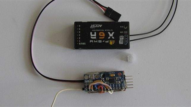 A přikládám fotku mého senzoru, který vrací AccX, AccY, AccZ, Alt, VSpd a VFAS. S tím funguje widget Horizont na všech přijímačích, které mají S.Port
