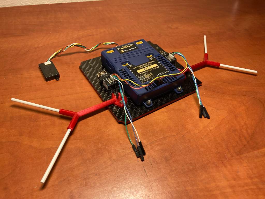 Zadní paluba s RB-30 a přijímači. Držáky antén jsou 3D tisk: