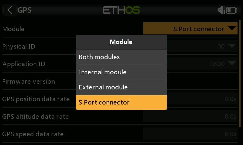 Počnúc ETHOS 1.5.X. ETHOS má nové funkcie vysielača S.Port.