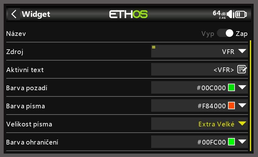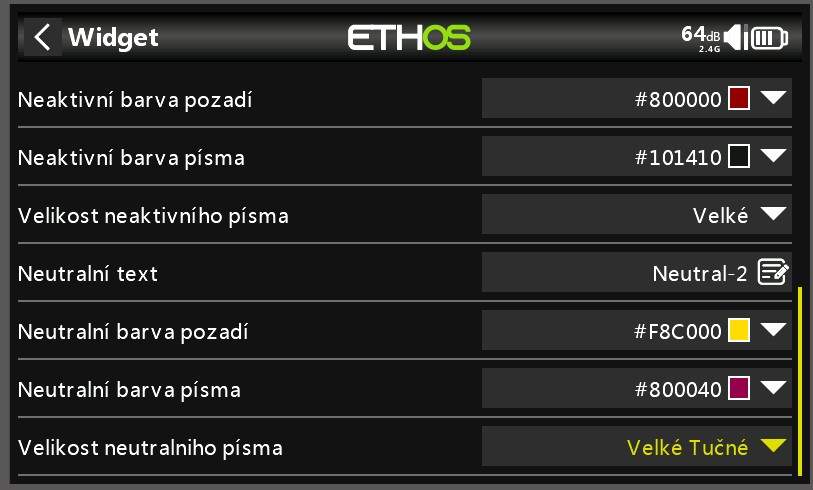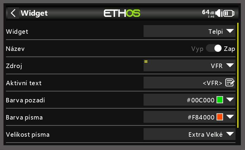 Na rozdiel od widgetu hodnota, tu si môžete nastaviť rôzne parametre. (farba, písmo, text...)