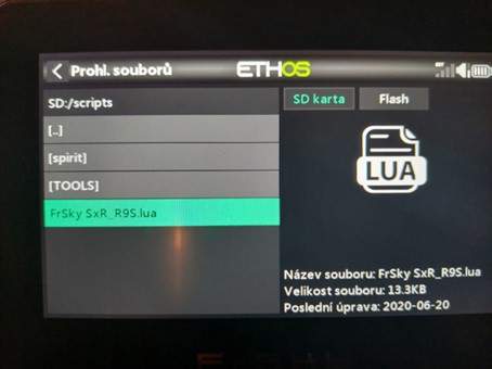 Nejdou mi spustit lua skripty ve vysílači X20. Po rozkliknutí souboru se otevře okno pouze s Kopírovat, Posunout a Smazat.