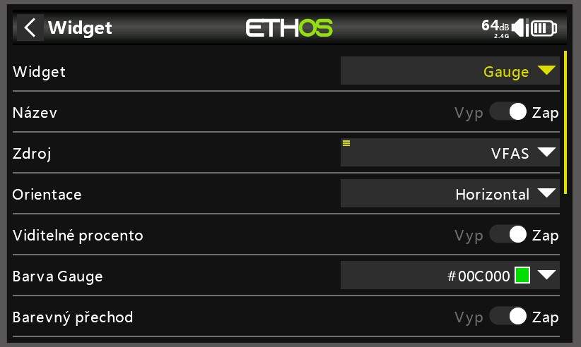 Lua Skript Gauge, ako merač napätia LiPo (tzv. teplomer).