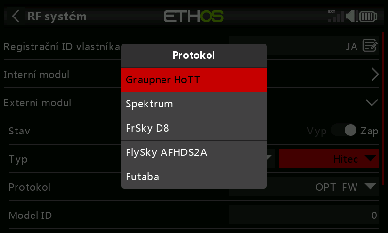 ETHOS má předdefinované protokoly nebo si dokáže přečíst to, co je v MPM (jak je teď std v OTX)? Používám do MPM vlastní build FW, kde mám jen asi 10 protokolů...