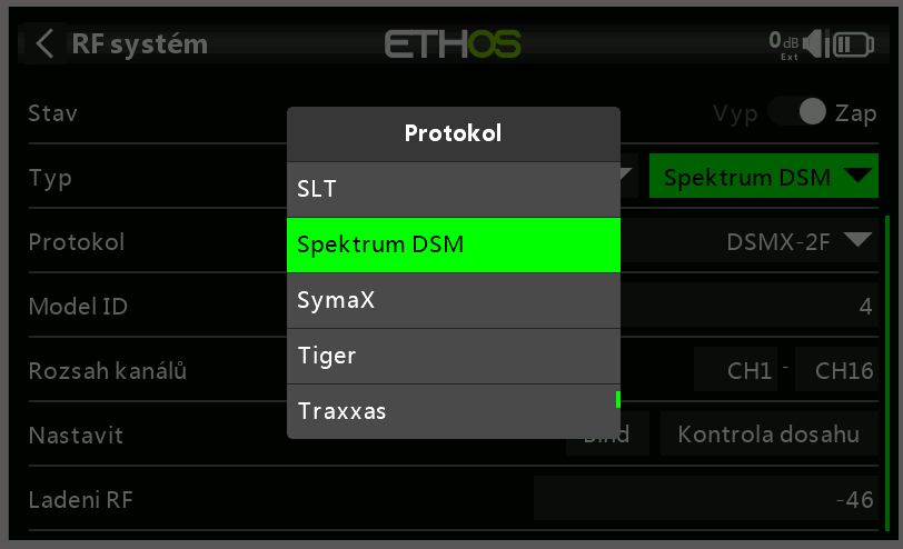 Prečíta to čo je v Lua skripte. Budeš musieť hľadať tie svoje protokoly medzi nimi (čo je asi blbosť je ich 90). Alebo si uprav skript podľa seba. V tom mojom sú všetky aktuálne protokoly, tak zmaž ktoré nepotrebuješ a nechaj tam len svoje. Ale či to bude fungovať s tvojím FW? Nefunguje to, ako v OTX. Určite by to išlo tak spraviť, ale je v tom politika a zákony. Aby sa FrSky vyhol neprijemnostiam každý ext. modul tretích strán musí mať svoj Lua skript. Napr. ten multiprotokol má DSM2 a ten je v EU nelegálny.