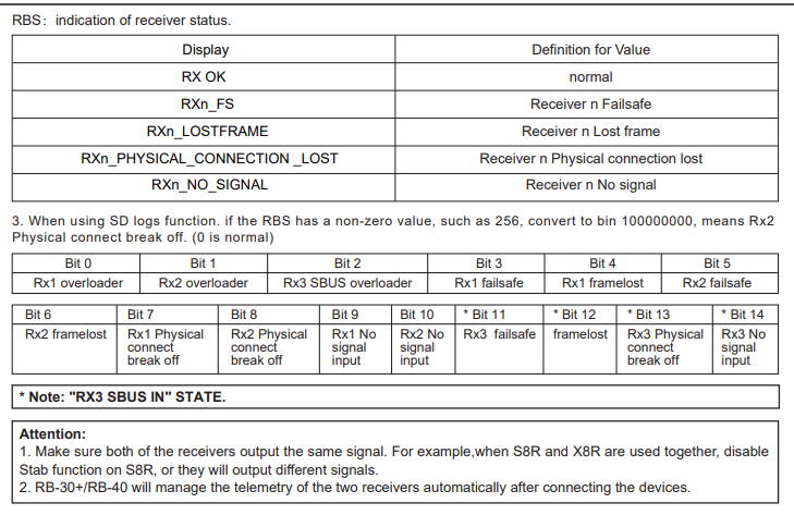Zdravím, po neblahé události z letiště zkoumám telemetrii v Companionu a u RBS jsem objevil neobvyklou hodnotu - 63776. Neví někdo, prosím, co tato hodnota představuje. Postupným testováním jsem zjistil pár hodnot (RX1/RX2 FS/LF), ale stav s hodnotou 63776 se mně navodit nepodařilo.