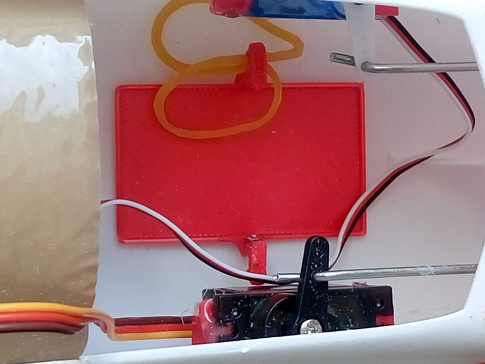V cloudsfly to ma dokonce jeste vice osizene, je tam vlozeny bez samolepky ci suchace, z boku ho fixuje material letadla a ze zhora prisroubovany kus plastu. Funguje velice dobre, ale axn je hodnous letadlo.