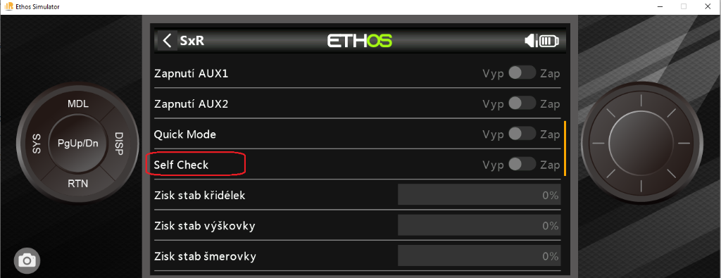 Upraveny FW pro stabilizace aby slo aktivovat selfcheck pres nastavovaci utilitu v ETHOSu. Aktualizujte ETHOS na min verzi 1.1.2