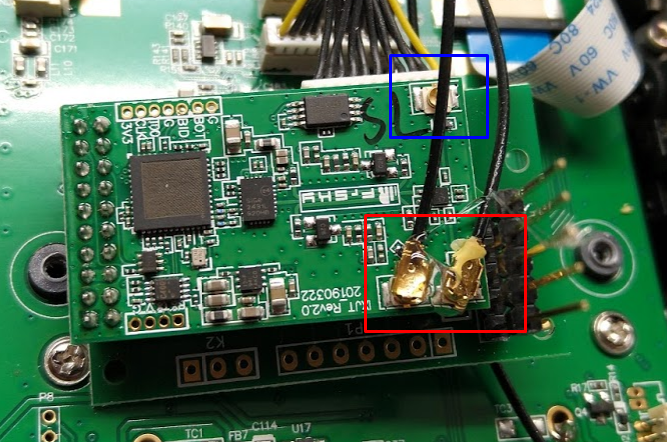 Konektor znaceny modre je pro externi antenu a ten osadim az potom co budu davat zpet zadni viko radia. Mozna Vam pomuze SMA konektor
