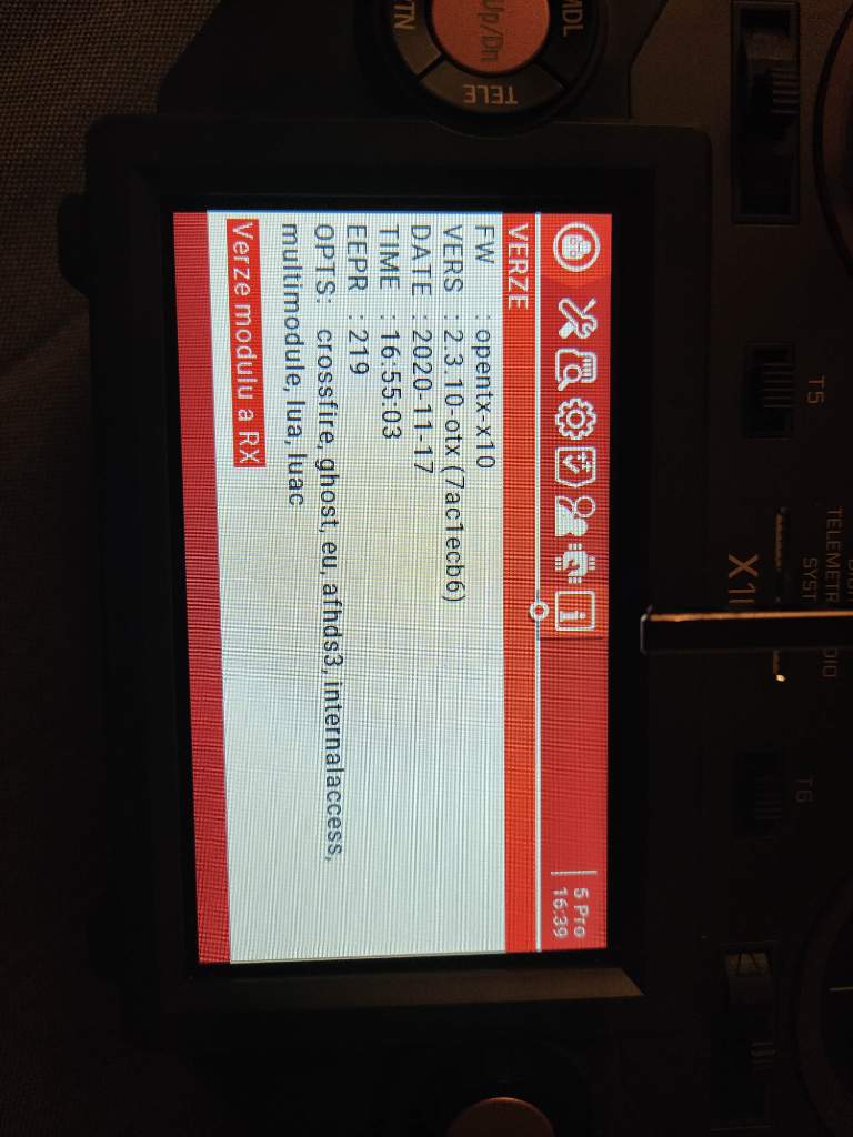 @SuperMUF: v rádiu je v sys menu napsaná verze OpenTX, pod ní na klik verze FW v modulu. U přijímačů buď zkusit spárovat nebo FW rovnou nahrát. Podpora D8 v XJT zůstává, ISRM moduly už D8 neumí. Aby bylo možné D8 vybrat, je potřeba nemít zaškrtnuto "eu " pro OpenTX FW (Companion).