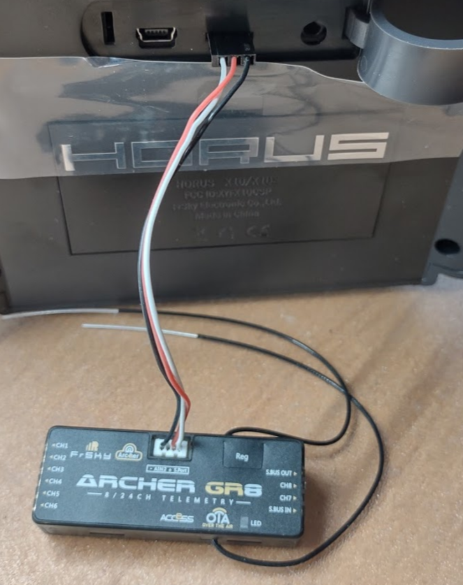 X10 jako ostatní radia ma S.port pro flesovani prijimacu a senzoru. Zapojeni konektoru je signal u vykusu + a - tzn nam staci klasicky kabel k cidlum nebo dodavane kabliky k prijimacum, ktere jsou osazeny danym konektorem.