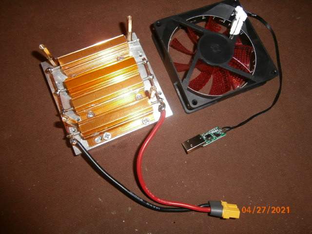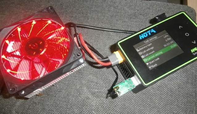 Tak jsem konečně spáchal externí odporovou zátěž a konečně můžu vybíjet rozumným proudem - funguje to. Mám nad odpory 4 malé ventilátorky a jsou napájeny přes výstup USB, kde pomocí malého měniče za pár korun z Číny jsem nastavil 12V a ventilátorky spokojeně chladí. Akorát je s tím spousta práce, protože se všechno musí "překáblovat", než se vše zapojí tak, aby to fungovalo.