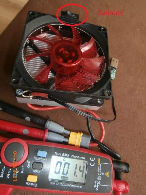 Má tri vývody, asi dve rýchlosti. Ja som využil iba jednu, asi tú pomalšiu a úplne to postačuje. Napájanie ventilátora je z USB cez DC/DC prevodník z 5V na 12V (5W).