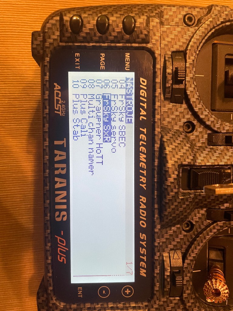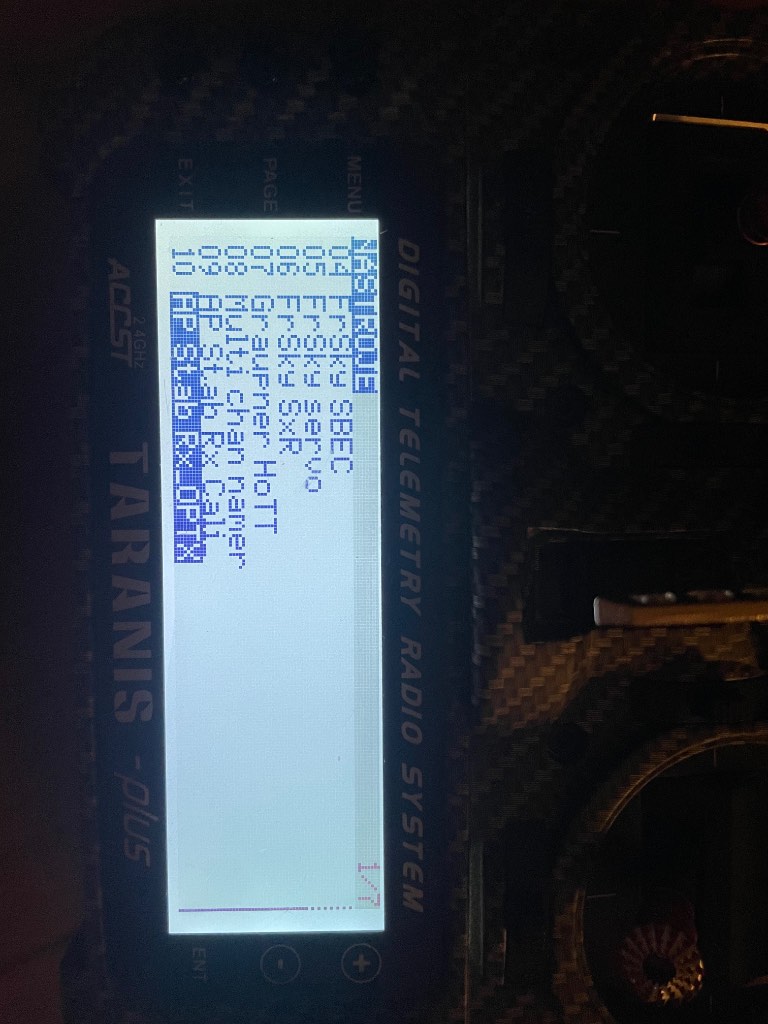 Dobrý den, jsem tady nový a předem se omlouvám za dotazy které mohou být pro někoho zbytečné nebo hloupé. Ale hold každý nějak začíná. Mám Taranis Plus a SR8 přijímač. Letadlo spárované, nastavené a plné funkční k letu. Po poslední kolizi kdy letadlo nešlo dobře srovnat ve větru jsem se rozhodl že se pokusím zprovoznit SAS a záchrannou stabilizaci. Bohužel jsem se pokusil na SD kartě o nastavení a kalibraci přijímače. Jenže jsem nikde soubor pro SR8 (SRx) nenašel, jen soubory SxR. Pouze jsem našel soubor Plus cali.lua a ten se odkazuje na SR10.