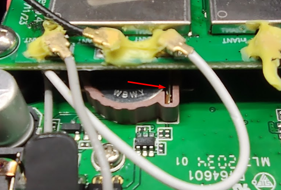 Kryt staci poodsunout a z horni casti od diplaye vidime slot pro baterii v cervenem ramecku, koax k antene do drzaku ukazuje zelena sipka, mista mame dost.