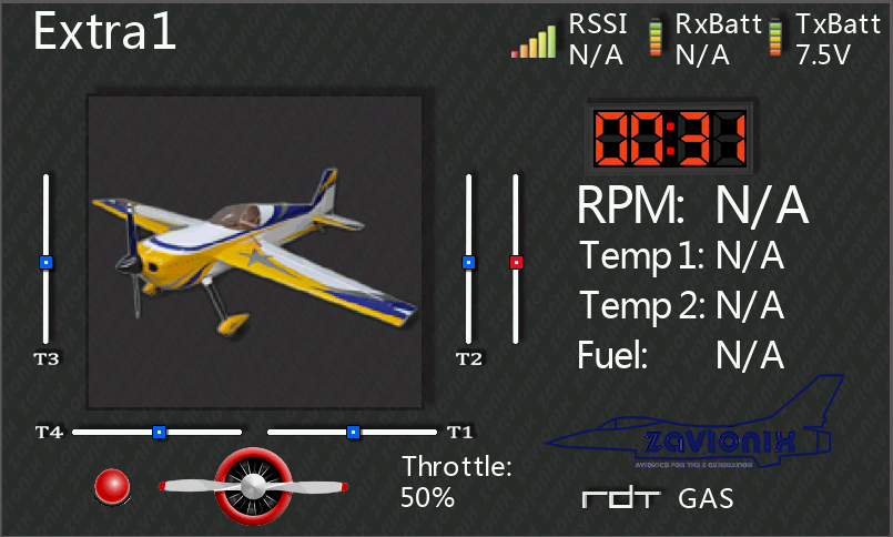 Widget Zavionix RDT GAS, výborný vidget pre spalováky. Funguje na X20 Ethos.