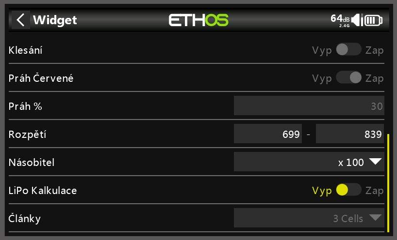 Lua Skript Gauge, ako merač napätia LiPo (tzv. teplomer).