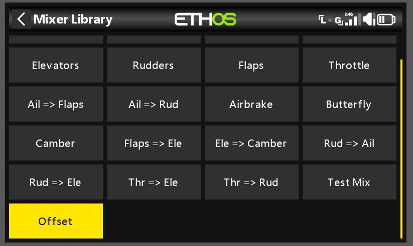 Co takhle použít mix typu Offset a přimíchat ho k požadovaným kanálům? Podmínkou mixu je konkrétní letový režim.