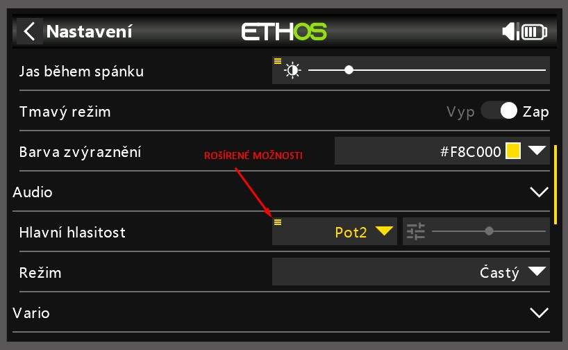 Priradenie ovládania hlasitosti sa nacháddza v hlavnom nastavení vo výbere "Hlavní hlasitost". Všimni te si malú ikonu, ktorá rozširuje možnosti. Po jej stlačení zadajte ,,Použít zdroj,, a vyberte čo chcete použiť na ovládanie.