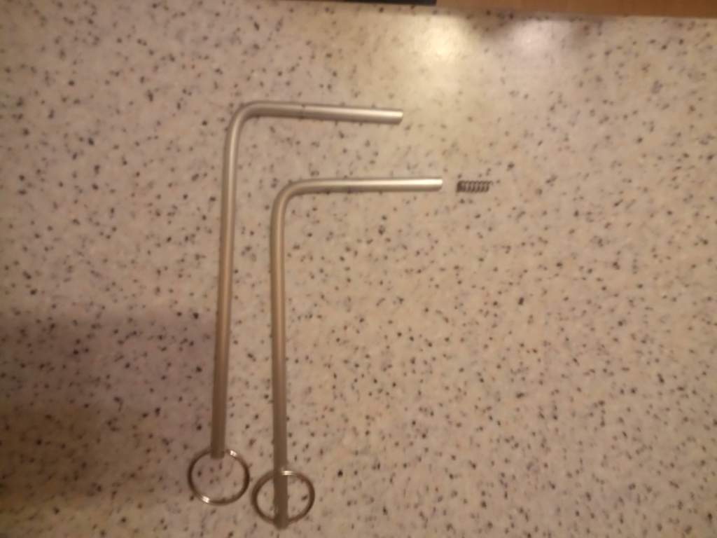 Tyč naohýbat do tvaru "L" vyvrtat otvory na kroužky od klíčů průměr 30mm.