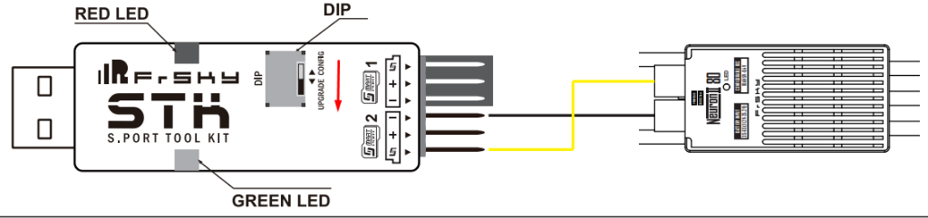 STK nastavime na upgrade a pripojime zluty kabel do SPORT a cerny do minusu