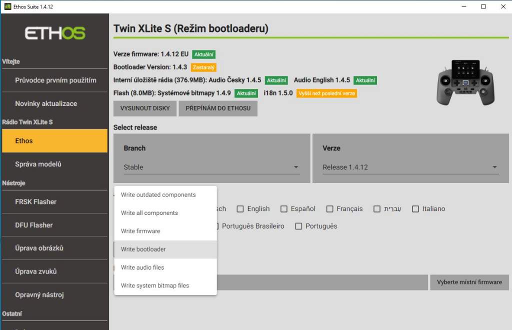 Zrovna včera jsem přes EthosSuite aktualizoval, a aktualizoval se automaticky i bootloader na 1.4.12